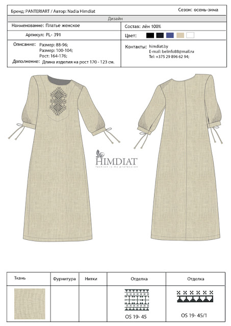 платья служит вышивка – геометрический орнамент в этническом стиле. Силуэтные